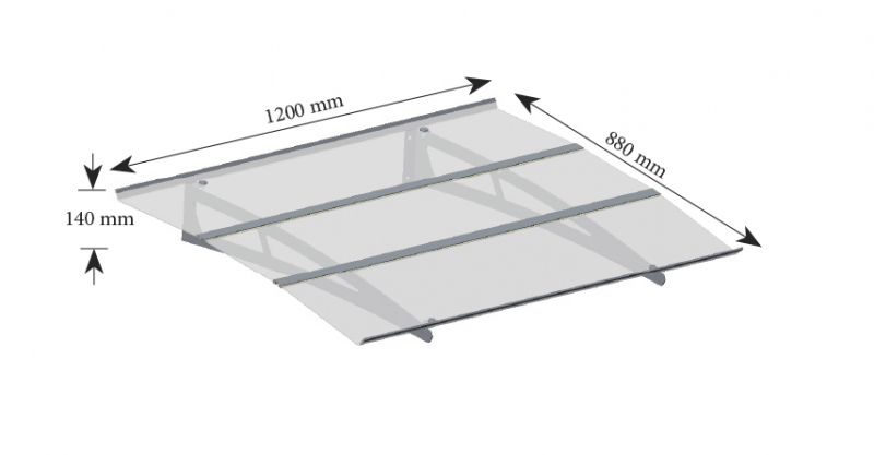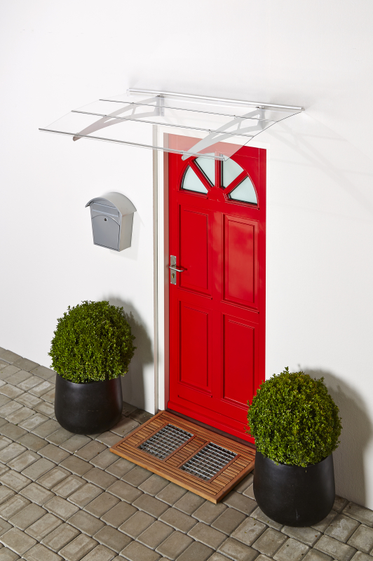 SUPERROOF Baldachin Modell EMMA 1200 in gebogenem Design. Abmessungen: 1200 x 740 x 285 mm x . Schützt Ihren Eingang vor Regen, Schnee und Hagel.