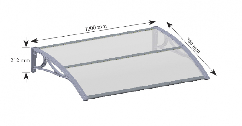 SUPERROOF Baldachin Modell EMMA 1200 in gebogenem Design. Abmessungen: 1200 x 740 x 285 mm . Schützt Ihren Eingang vor Regen, Schnee und Hagel. Halterungen aus schlagfestem und windabweisendem Kunststoff ( schwarz ). Wetterbeständigkeit: nicht durch Änderungen der Außentemperatur verformt. Aluminiumverkleidungen vorne und hinten der ultra-dauernswerten 2 mm. transparente UV-stabilisierte Polycarbonatfolie. Hohe Lichtdurchlässigkeit. Die Polycarbonatfolie wird durch 1 Aluminium-Kreuzstreben verstärkt. Schneelast: 97,5 kg pro m2. 5 Jahre Wetterbeständigkeit Garantie auf das Polycarbonat. Schnell und einfach zu montieren - alle Großgeräte in Folie und Halterungen sind vorgebohrt. Bei Bedarf kann es durch Einfügen zusätzlicher Sätze erweitert werden. Schrauben zur Wandbefestigung in Ziegeln enthalten. Maße: Breite: 1200 mm Tiefe: 740 mm. Einbauhöhe über der Tür: 285 mm. Technische Information: