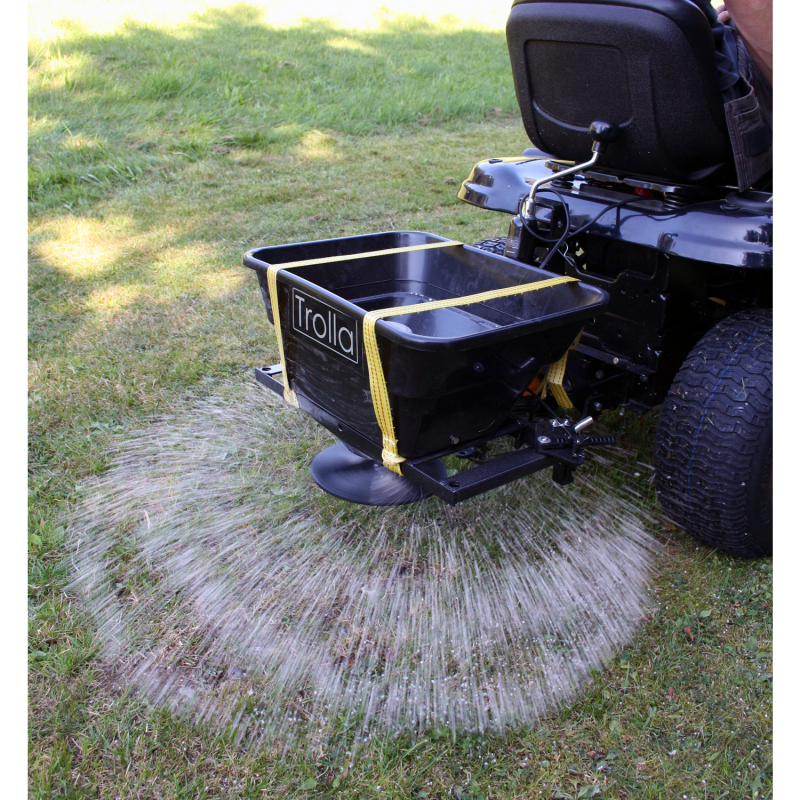 Elektrischer Tellerstreuer für den Rasentraktor. 12V El-Motor. Dungstreuer auch für Salz oder Sand geeignet. Kunststoff 36 l Trichter mit Regenplane. Streubreite Ø3,5 m. Siehe auch Trägerrahmen Art. 12061 und TS Grundmodul Art. 12072. Passt zu den meisten Quad/ATVs evt. mit der Anbauplatte für ATV Art. 12059. Unmontiert geliefert.