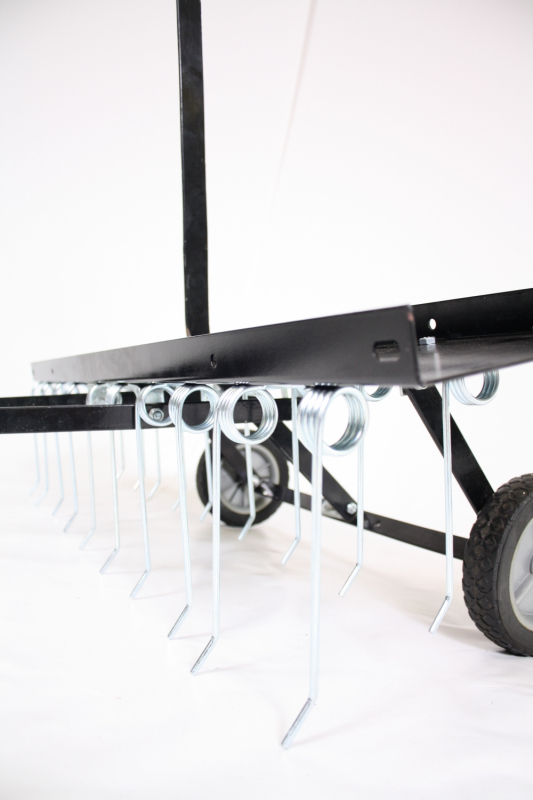 Rasenkamm / Entmoser mit einer Arbeitsbreite von 100 cm. 20 (2x10 dobbelt) Feder / Zinken) Vom Sitz aus einstellbar. Kann mit dem LEAVY 97/120 kombiniert werden. Unmontiert.