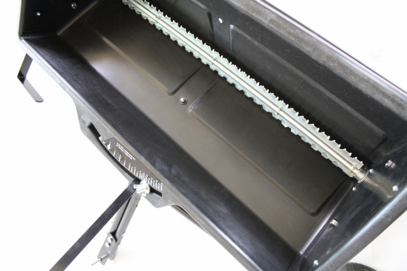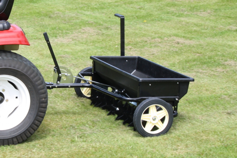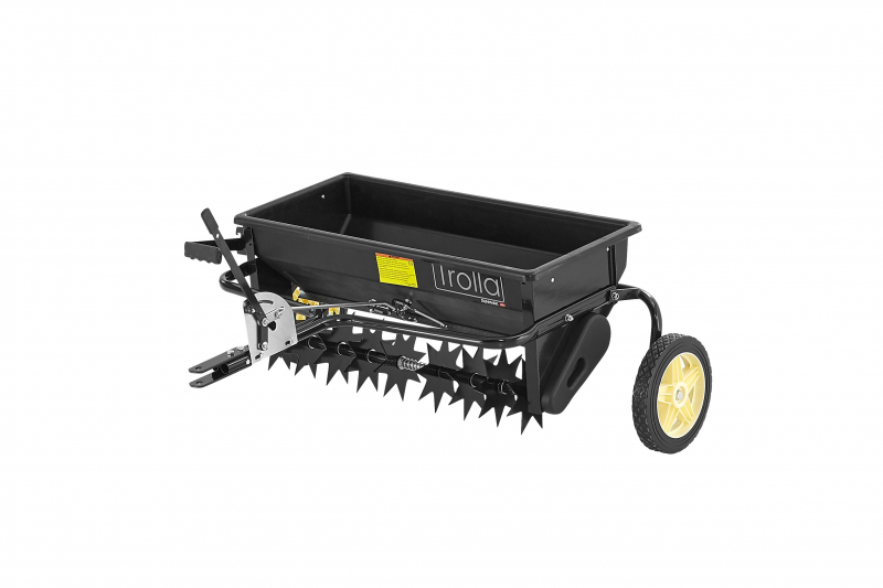 Hermit wird der Rasen in einem Arbeitsgang gelüftet und gedüngt. Kapacität 45 l. Dimension: 970x880x470 mm. Vertikutierer mit 9x8 Messer. Kunststoff Trichter. Mit Hebe-Senk-Mechanismus während der Transport.